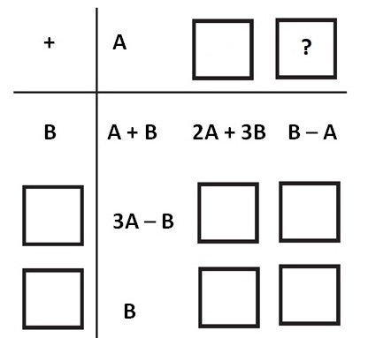 Find the expression that is represented by the "?" in the addition grid shown.Your Answer: You did not answer this question.