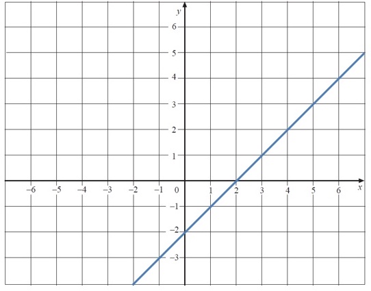 The diagram shows a graph of the line with equation `y = x − 2`.
