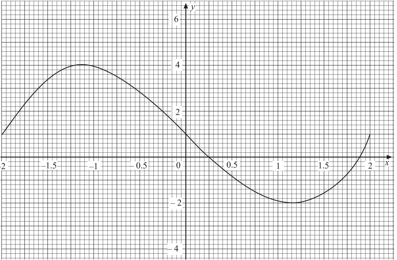 The diagram shows part of the graph of `y = x3 − 4x + 1`.