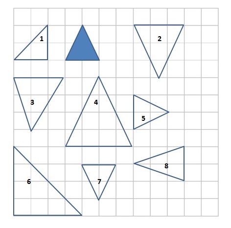 Select the number of the shape that is similar, but not congruent, to the shaded shape.