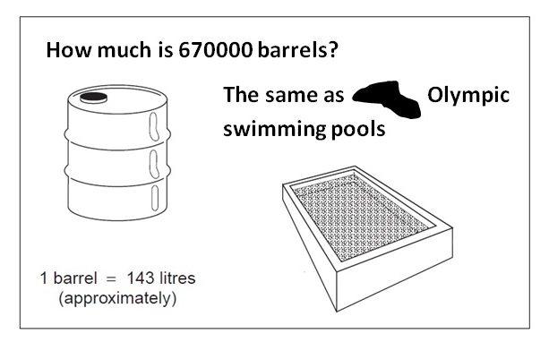 In 2010 an estimated 670,000 barrels of oil were spilled into the Gulf of Mathsland due to the Mathsland Deepwater Oil Disaster.