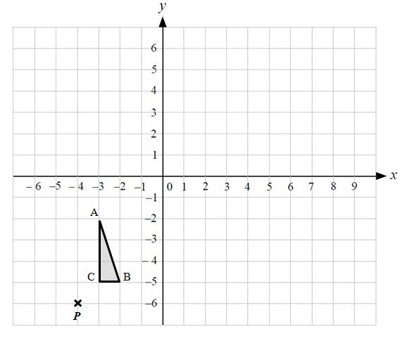 The triangle ABC is enlarged by scale factor 3, where point P is the centre of enlargement.