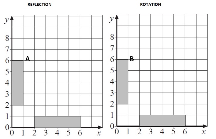 A rectangle with corner A(1, 6) is reflected.