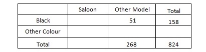 The model and colour of cars were recorded and the results put in a table.
