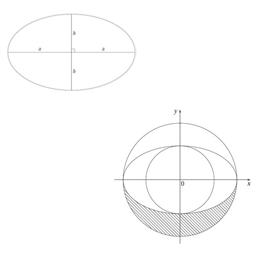 The diagram shows two circles and an ellipse, all centred at the origin.