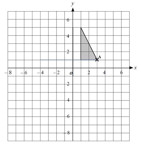 The triangle is enlarged by a scale factor of `1/2` about the centre `("−"7, "−"1)`.