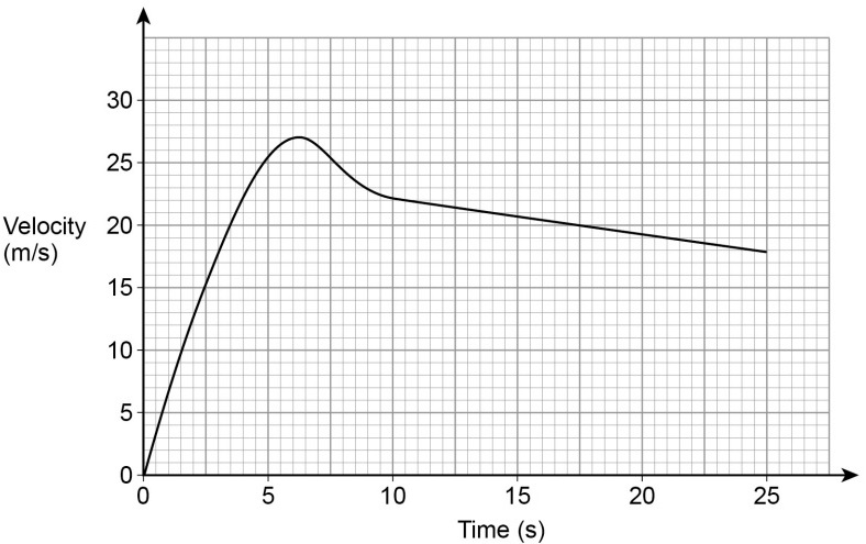 The diagram above shows a velocity-time graph of a motorbike over `25` seconds.