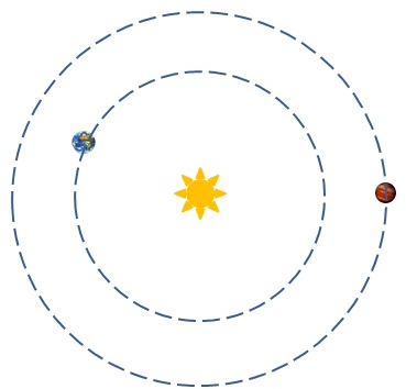 The planet Earth and the planet Mars are assumed to perform circular orbits around the Sun.