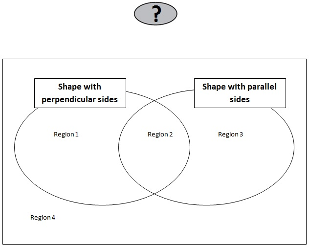 The Venn diagram is used for sorting shapes.Which region would the shape shown go in?Choose your answer:1342None of the regions