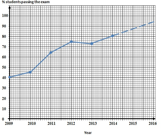 A graph was included with the article showing the percentage of students who passed the Mathsland Mathematics Examination over the period 2009 – 2014.